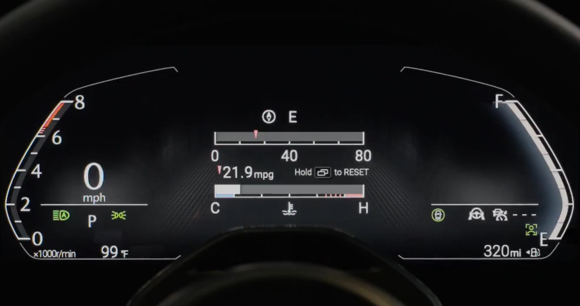 In the example above, when the seafood restaurant directions are set, this is where the new digital driver's display lens steps in. The directional graphics can be shown on the display directly in front of the driver, further minimizing eye distraction. Important driving information, such as speed, fuel gauge, and others, remains on the perimeter.
